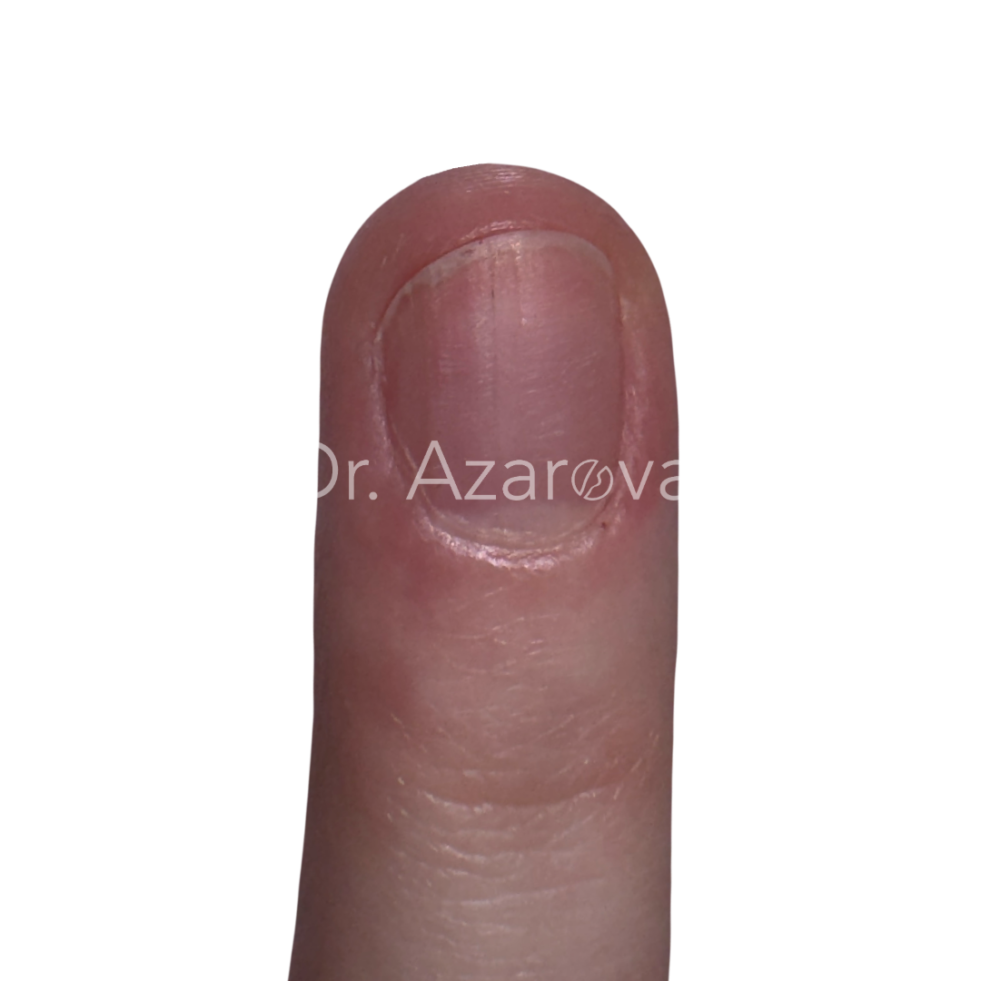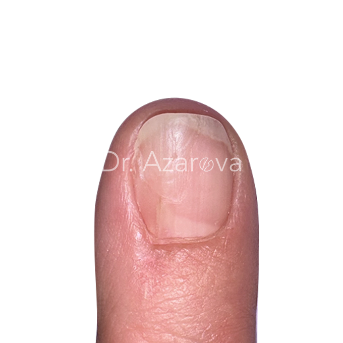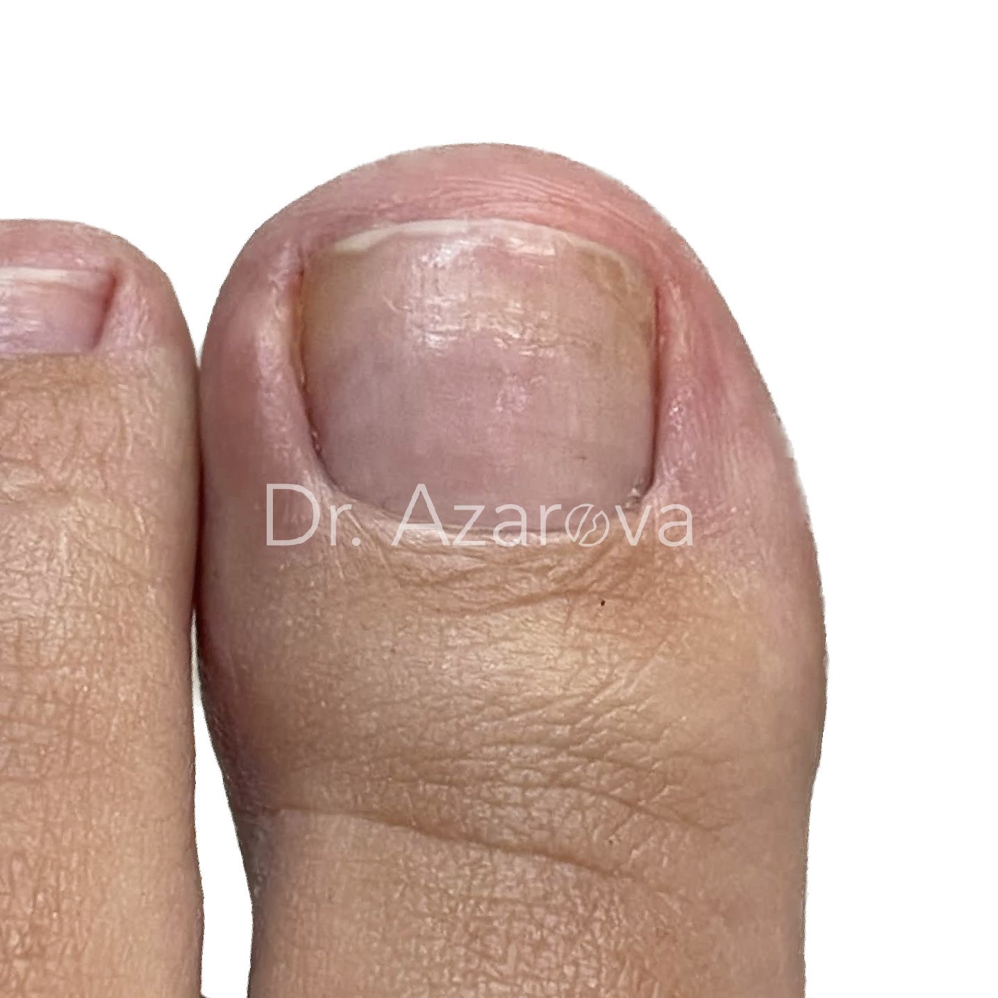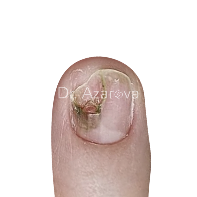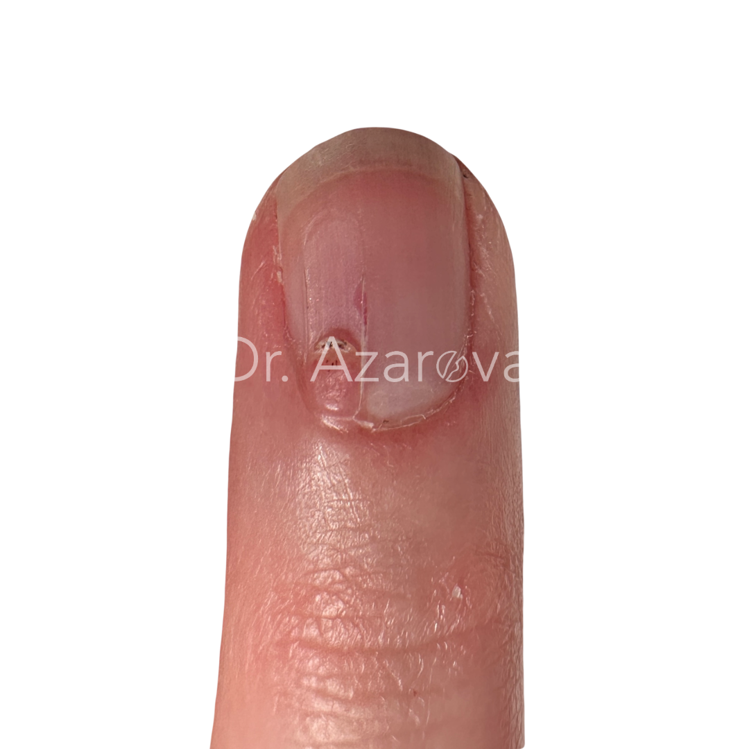 Около 10 лет назад после удаления вросшего ногтя у пациентки сформировалась гипертрофия околоногтевых валиков, в 2018г была проведена неудачная пластика, после чего возник фиброз и деформация околоногтевых тканей, нарушение роста ногтевой пластины. Консервативное подологическое лечение не привело к успеху.