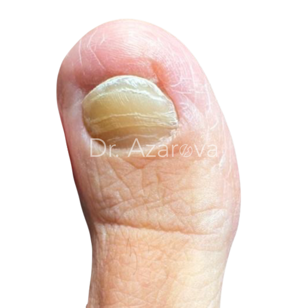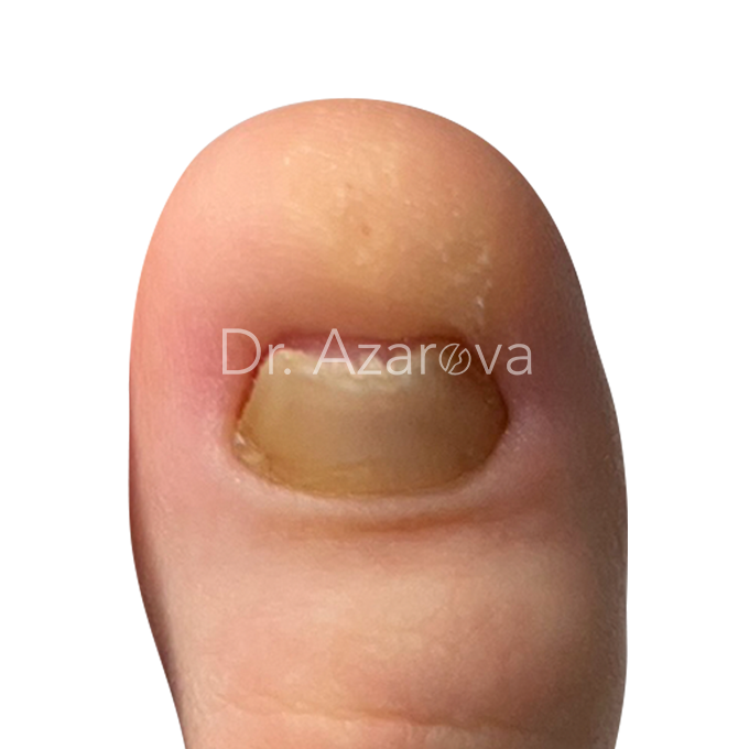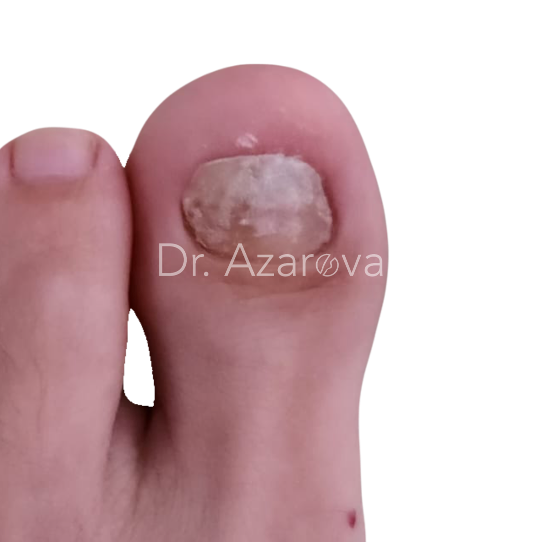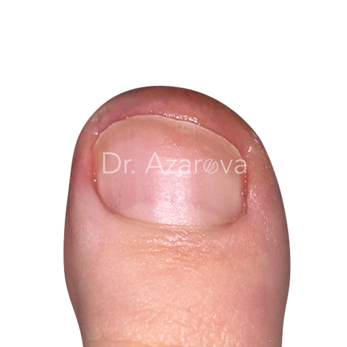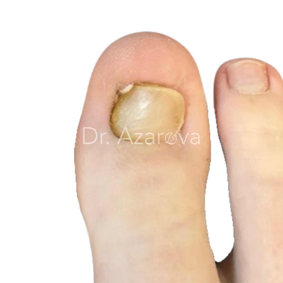 Около 10 лет назад после удаления вросшего ногтя у пациентки сформировалась гипертрофия околоногтевых валиков, в 2018г была проведена неудачная пластика, после чего возник фиброз и деформация околоногтевых тканей, нарушение роста ногтевой пластины. Консервативное подологическое лечение не привело к успеху.