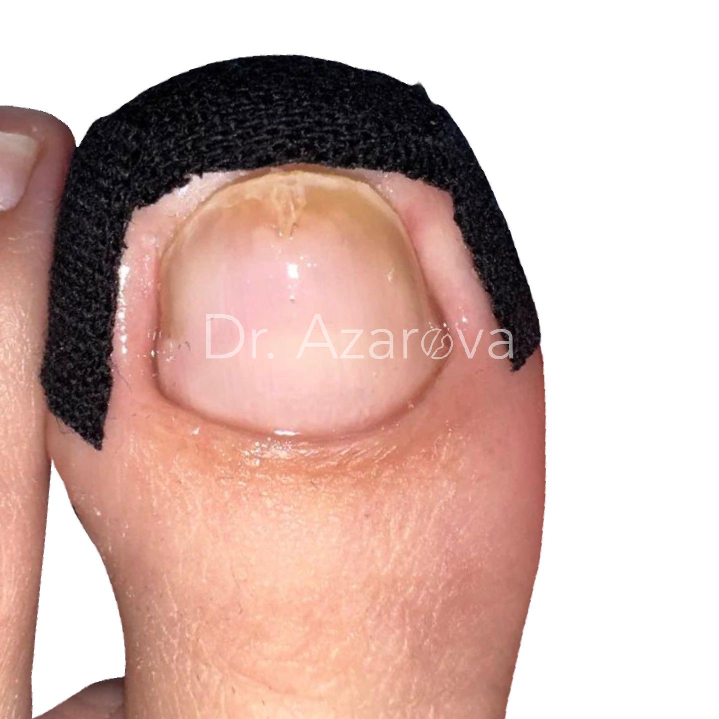 2. Консервативное подологическое лечение в течение 2 лет (ортониксия, обработка ногтевых пластин, тейпирование валиков)